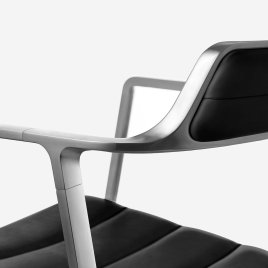 Vipp452 Drejestol, Poleret Stel/Sort Læder