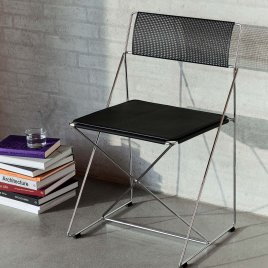 X-Line Stol i Krom er designet af Niels Jørgen Haugesen og produceret af Hay. Denne version af X-Line Stol er et minimalistisk og stilrent design med et skinnende kromstel, der skaber et moderne og industrielt udtryk. Uden polstring giver stolen et let og åbent look, der passer perfekt til både moderne hjem og kontormiljøer, hvor det enkle design står i centrum.