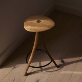 Taburettens design er minimalistisk, med rene linjer og en rundet form, hvilket giver den et let og moderne udtryk. De stabile ben sikrer god støtte, og den olierede eg tilføjer en luksuriøs og naturlig glød til ethvert rum.