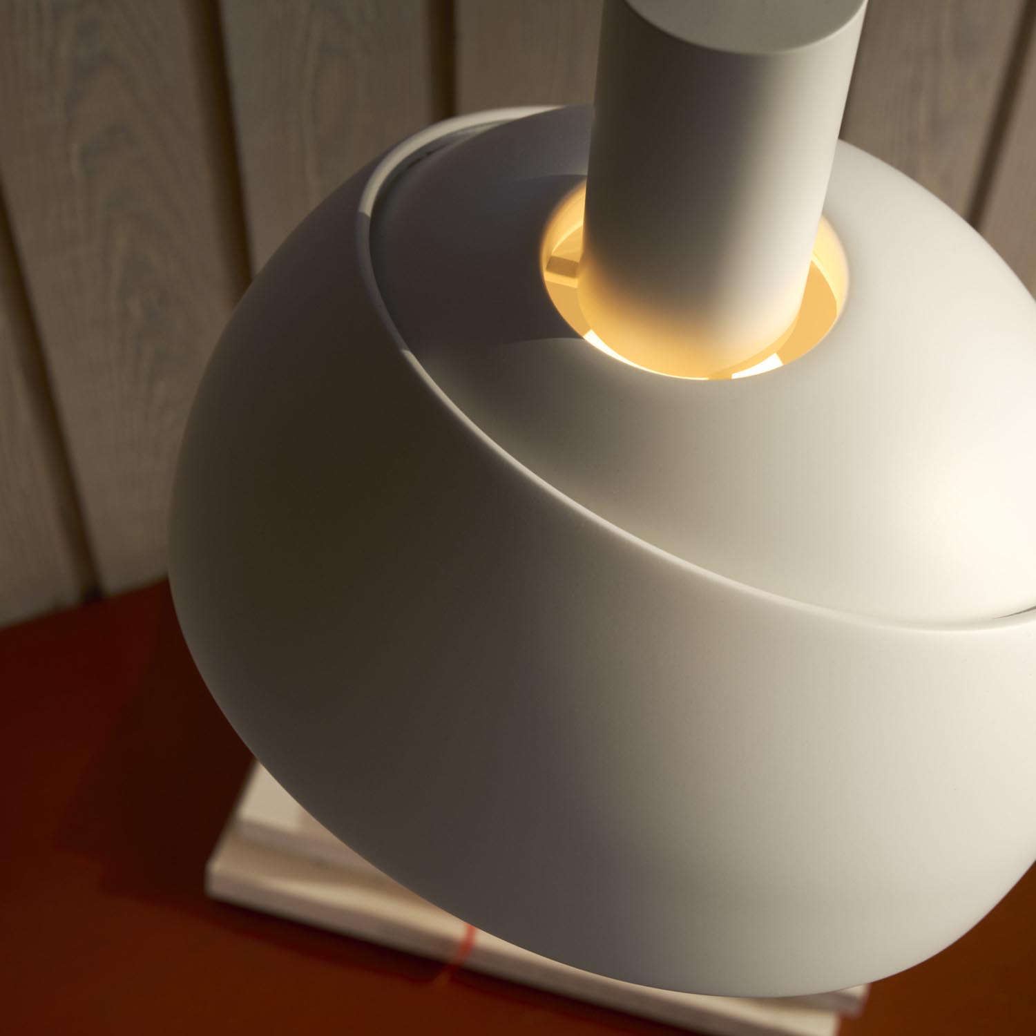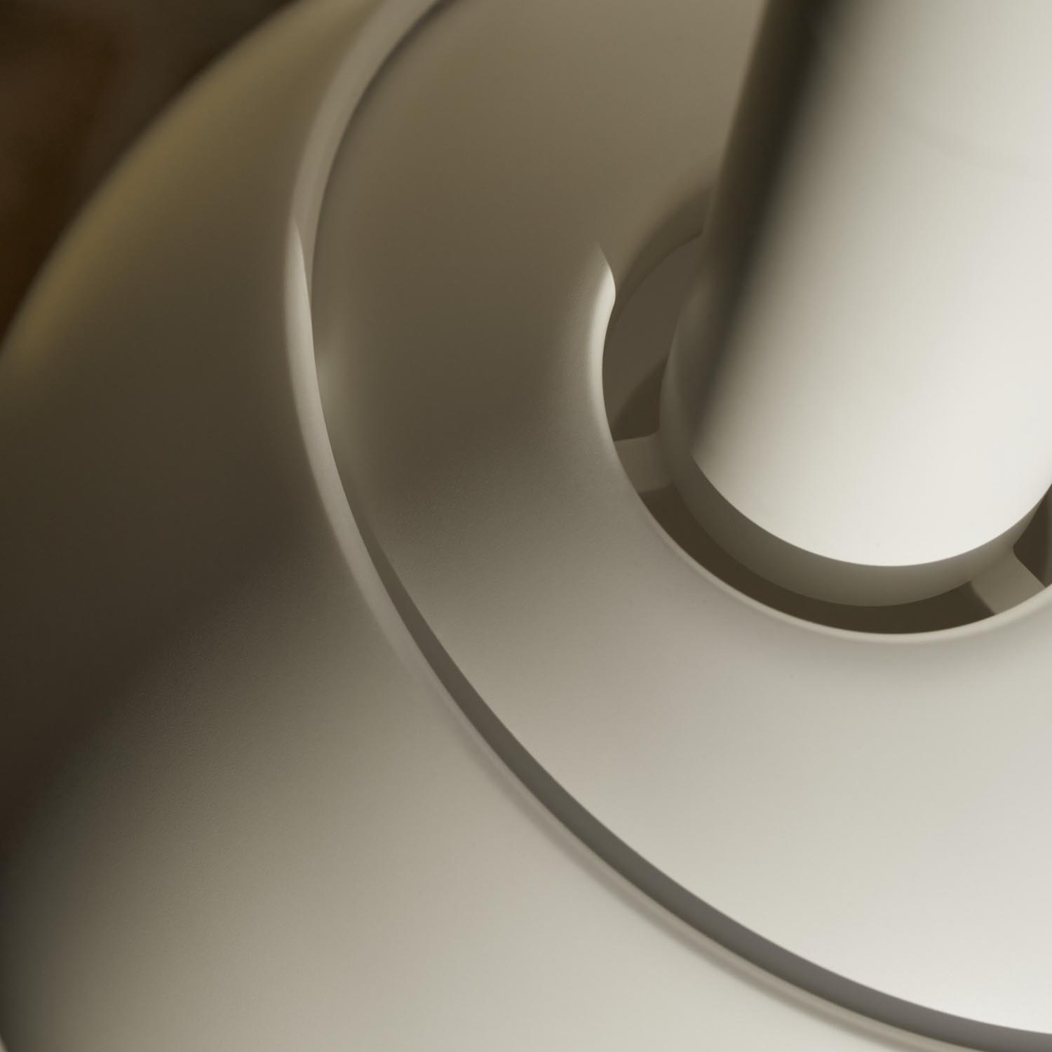 Designet udmærker sig ved sin enkle geometri og præcise materialevalg, men også ved en legende funktionalitet: Den øverste skærm kan rotere omkring den nederste, så lyset kan rettes og formes efter behov. Denne bevægelse skaber ikke kun en dynamisk belysning, men ændrer også lampens visuelle udtryk på elegant vis.