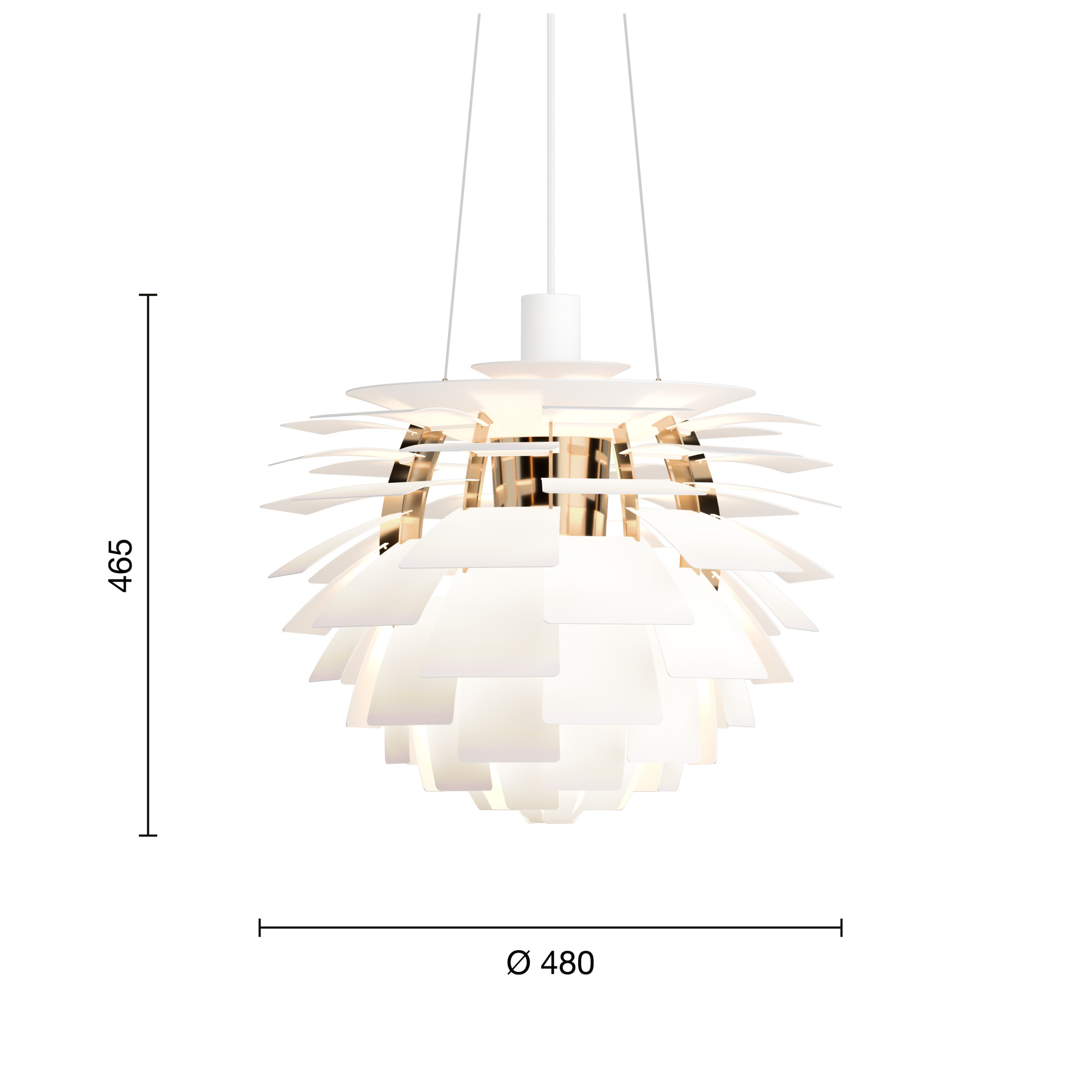 PH Artichoke i Soft White og Messing – ikonisk pendel af Poul Henningsen