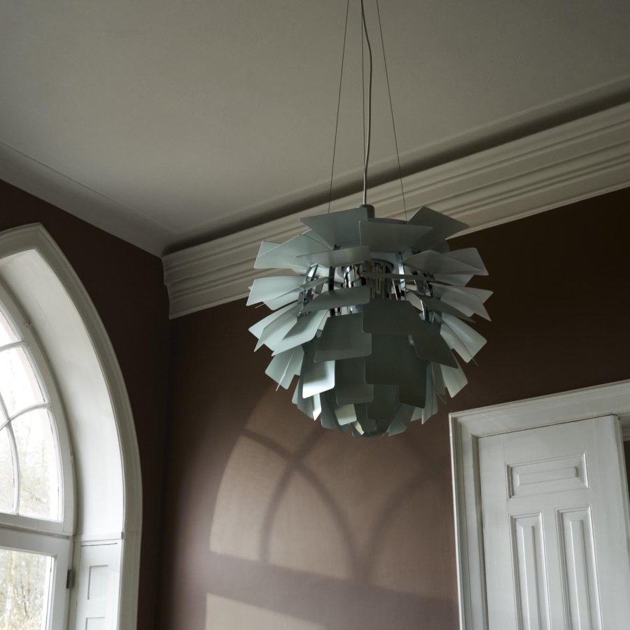 Navnet PH Kogle – også kendt som PH Artichoke – henviser til lampens karakteristiske, lagdelte struktur, hvor lyset spredes både indad og udad. Resultatet er en blød, jævn og stemningsfuld belysning, der skaber en behagelig atmosfære i rummet. Den støvede grønne nuance kombineret med kromets kølige refleksioner giver lampen et moderne, let og eksklusivt udtryk, der passer perfekt til både private hjem, kontorer og repræsentative miljøer.