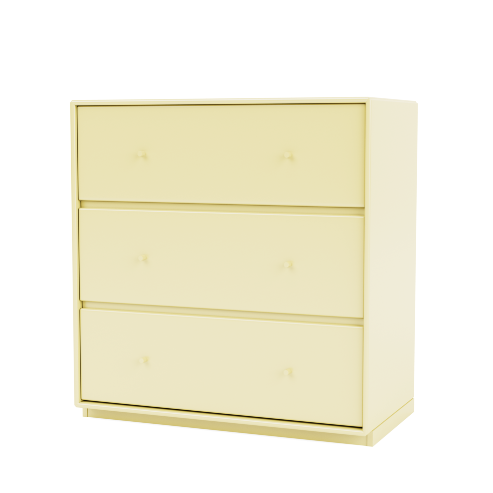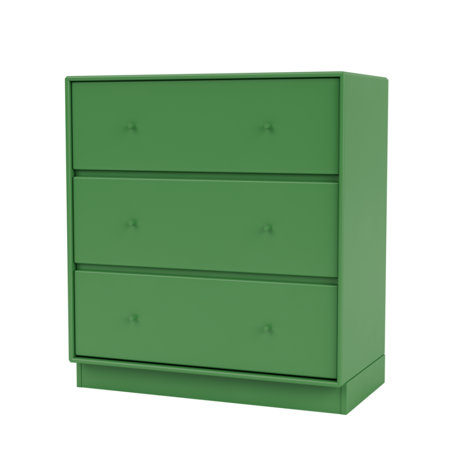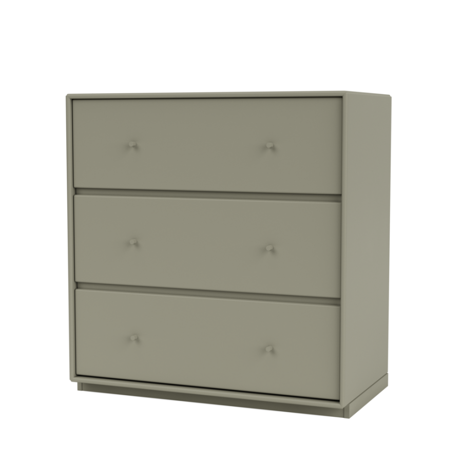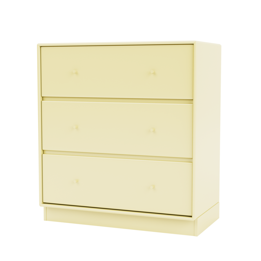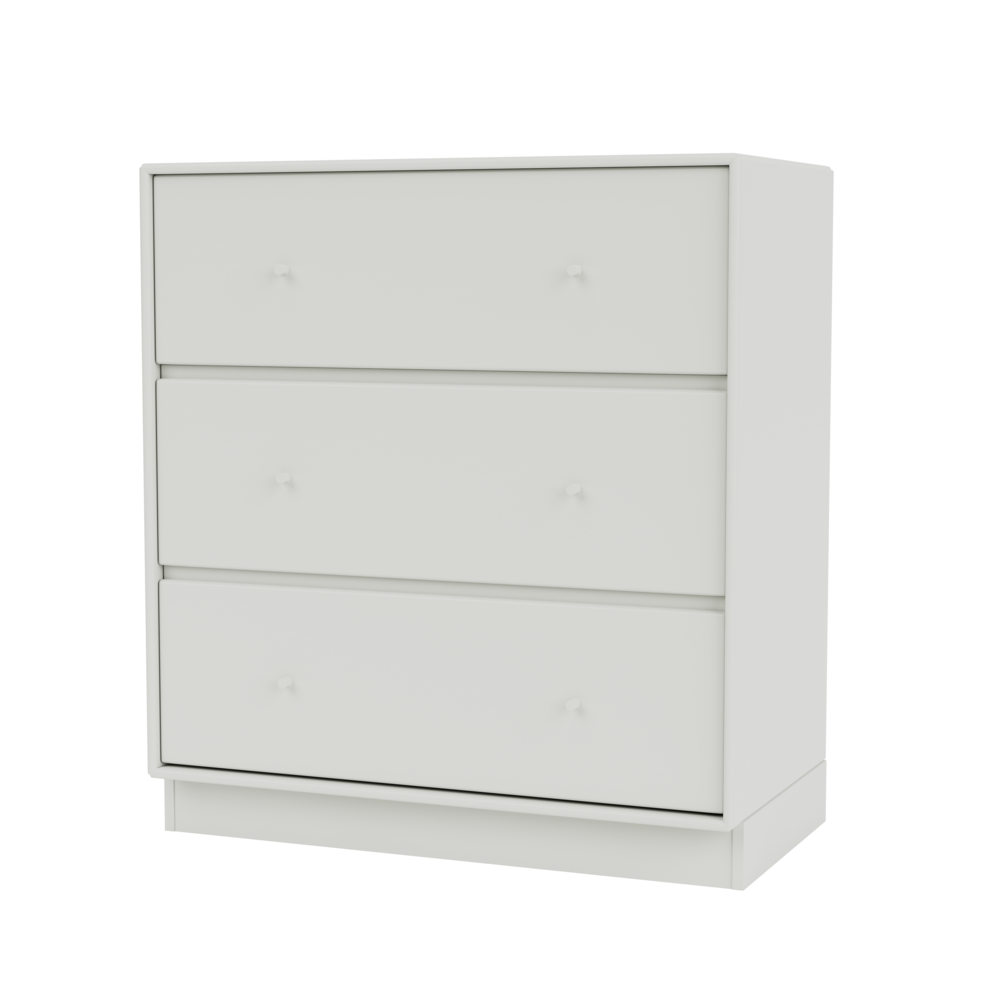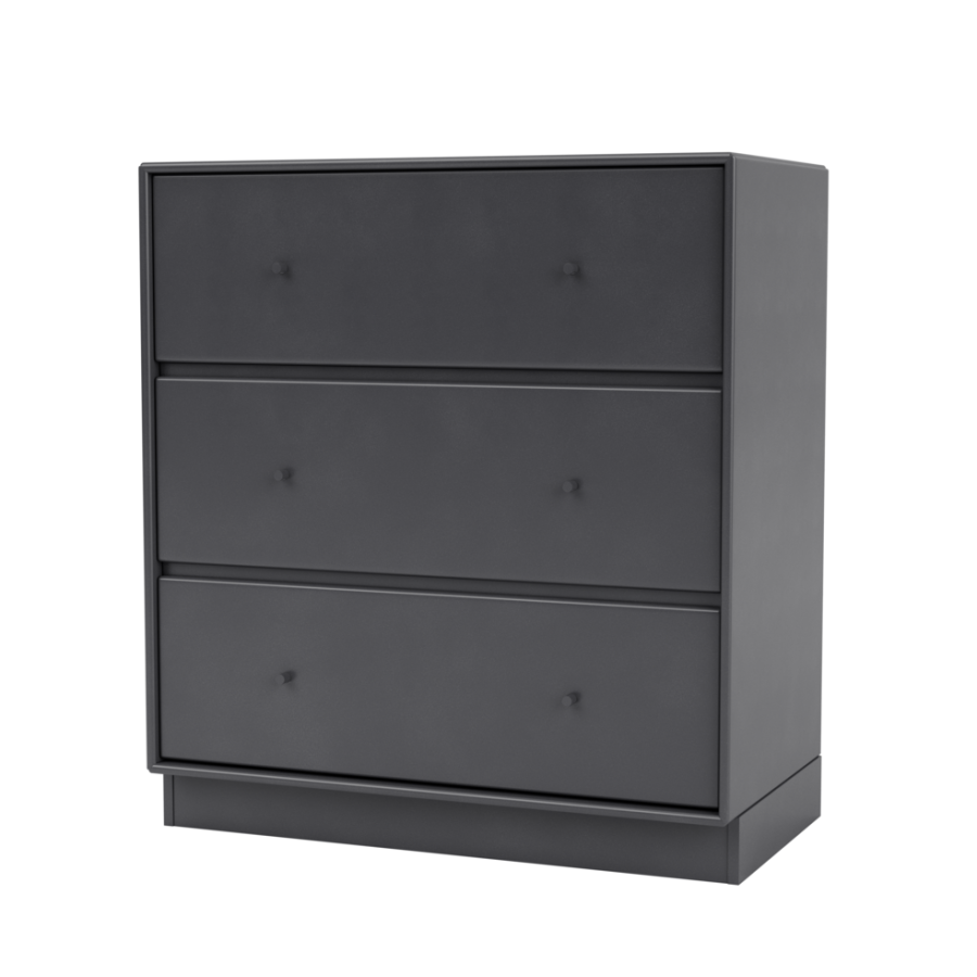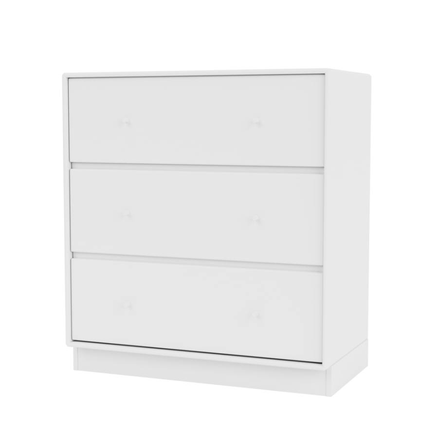 Den har tre rummelige skuffer i én række og leveres med enten en 3 cm eller 7 cm sokkel.