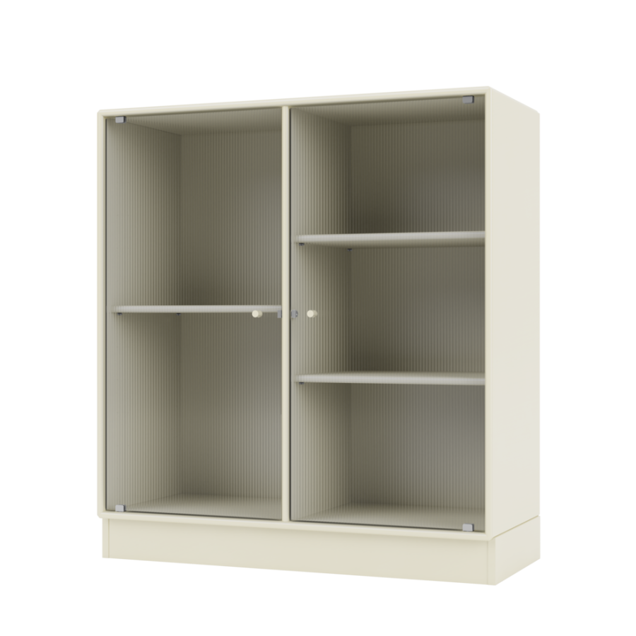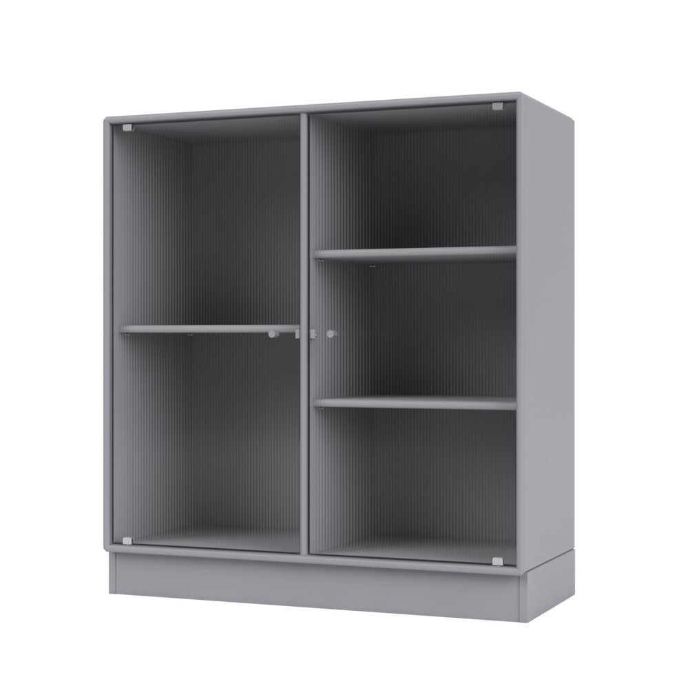 Indvendigt er der tre flytbare hylder, som gør det nemt at tilpasse opbevaringen efter behov. RIPPLE II fås i Montanas 41 lakfarver, og grebene er pulverlakerede i samme farve som skabet.