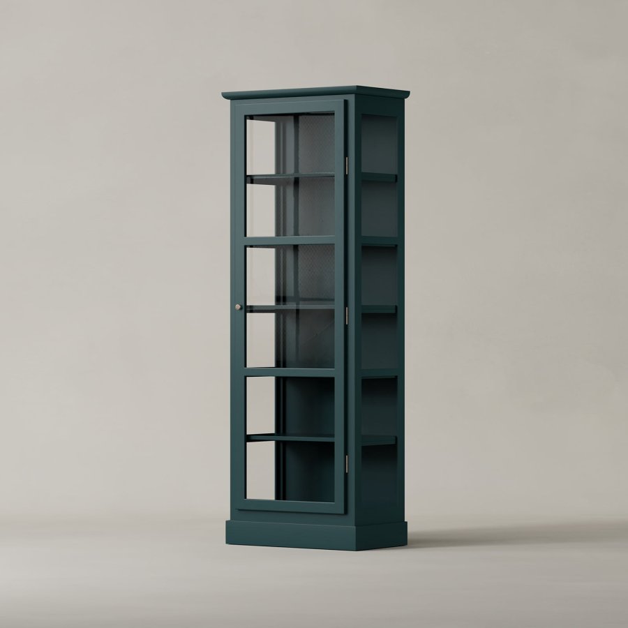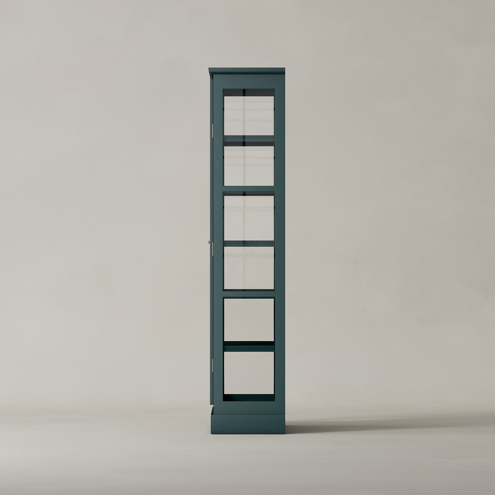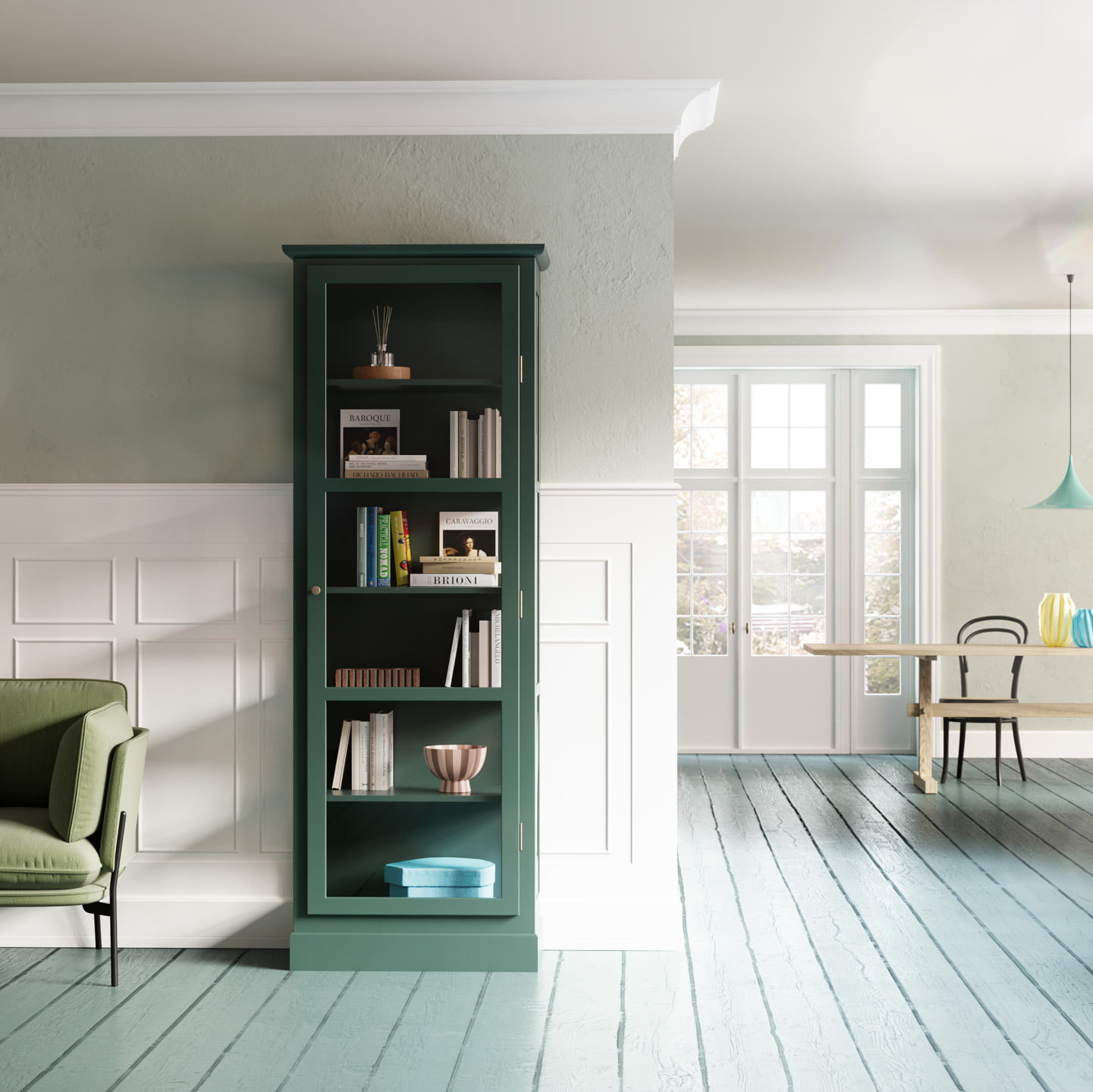 Color N1 er udført i en afbalanceret nuance, der tilfører vitrineskabet karakter og personlighed. Den harmoniske farve står smukt til skabets rene linjer og skaber en elegant kontrast, som passer perfekt ind i den moderne, skandinaviske indretningsstil, hvor farver og materialer bruges med omtanke. Vitrineskabet er fremstillet i massivt fyrretræ og udstyret med hængsler og greb i messing, der tilføjer et varmt og eksklusivt præg.