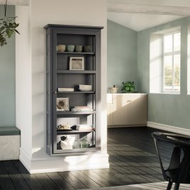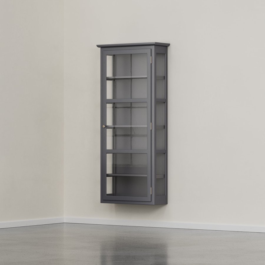 Det væghængte Color N4 vitrineskab er udført i en afbalanceret farvetone, der fremhæver skabets enkle og elegante formsprog. Kombinationen af den nøje udvalgte farve og de rene linjer gør vitrinen ideel til den skandinaviske indretningsstil, hvor farver og kontraster skaber liv og personlighed. Skabet er fremstillet i massivt fyrretræ og udstyret med hængsler og greb i messing, som tilfører et varmt og eksklusivt udtryk.