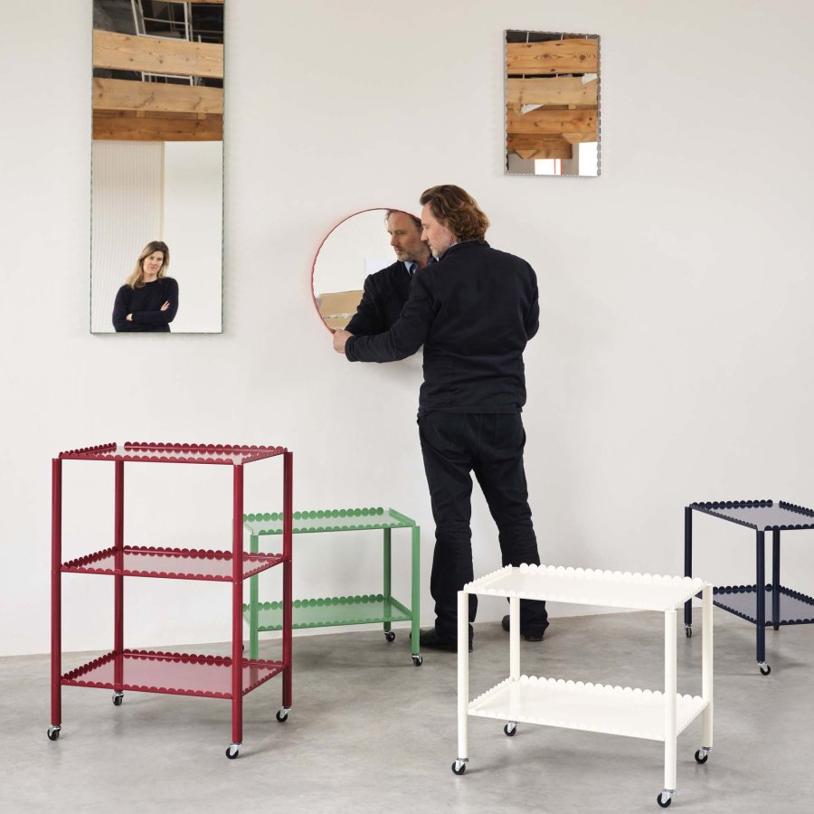 Arcs Trolley Lav i Eggshell er designet af Muller Van Severen og produceret af HAY. Denne moderne trolley kombinerer et minimalistisk design med praktisk opbevaring og har to hylder, der giver plads til både funktionel opbevaring og præsentation af dine yndlingsgenstande.