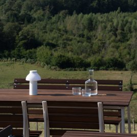 Bordet har en minimalistisk profil og rene linjer, der gør det let at integrere i enhver udendørs indretning. Det tilbyder generøs plads til måltider, samvær og afslapning, hvilket gør det ideelt til både hverdagsbrug og særlige lejligheder.