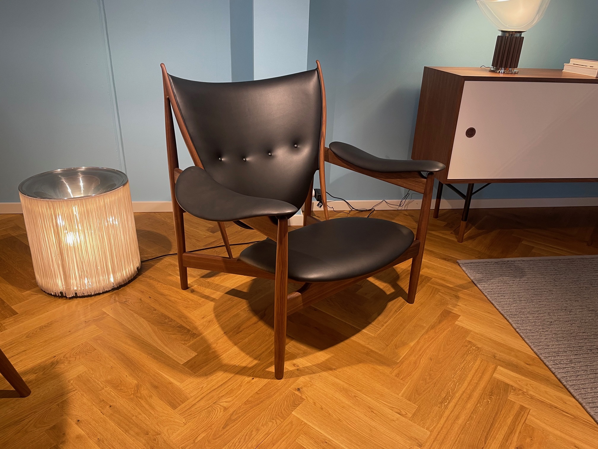 Finn Juhl Høvdingestol, Læder Nevada Sort, Valnød