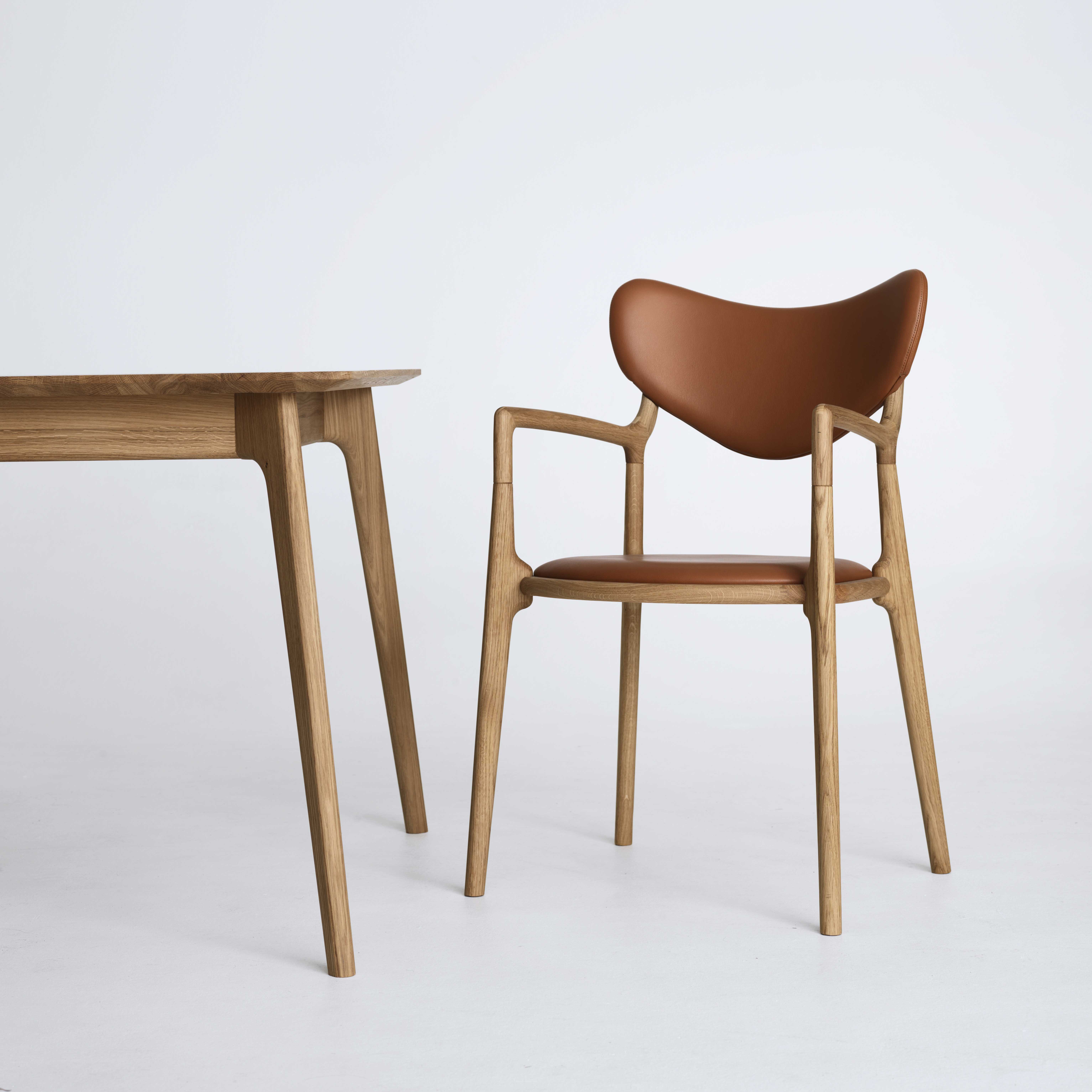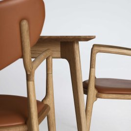 Designet er kendetegnet ved rene linjer og slanke, let skrånende ben, der giver bordet et let og balanceret udtryk. Den sæbebehandlede overflade tilfører bordet en blød, naturlig finish, som gør det velegnet til både moderne og klassiske indretninger.