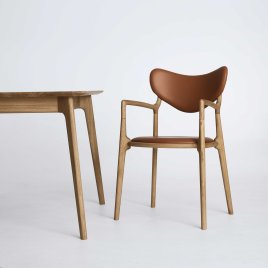 Designet er kendetegnet ved rene linjer og slanke, let skrånende ben, der giver bordet et luftigt og balanceret udseende. Den sæbebehandlede overflade giver bordet en naturlig og blød finish, som gør det let at vedligeholde, samtidig med at det passer ind i både moderne og klassiske indretninger.